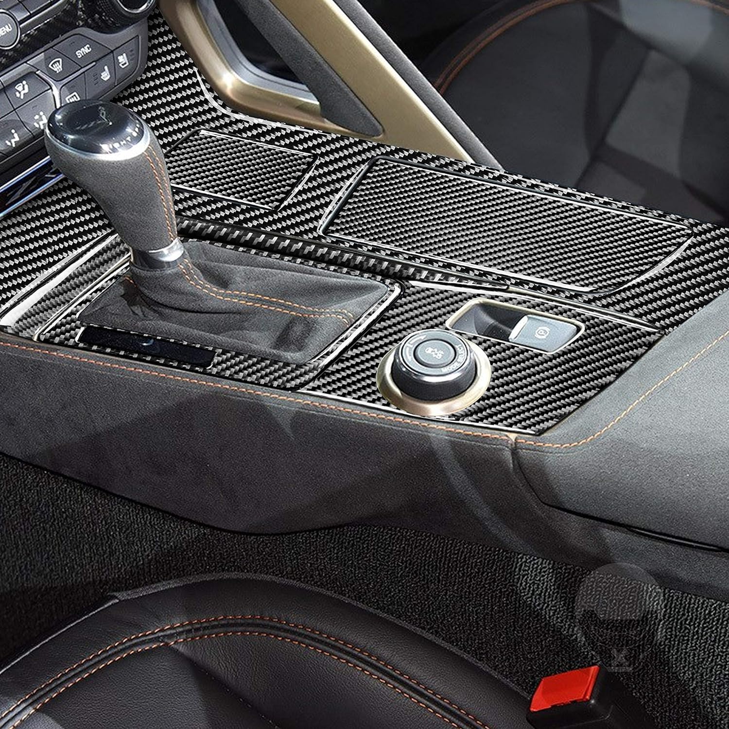 - RED CARBON FIBER SHIFTER KNOB HANDLE COVER | 2014-2019 CHEVY CORVETTE C7