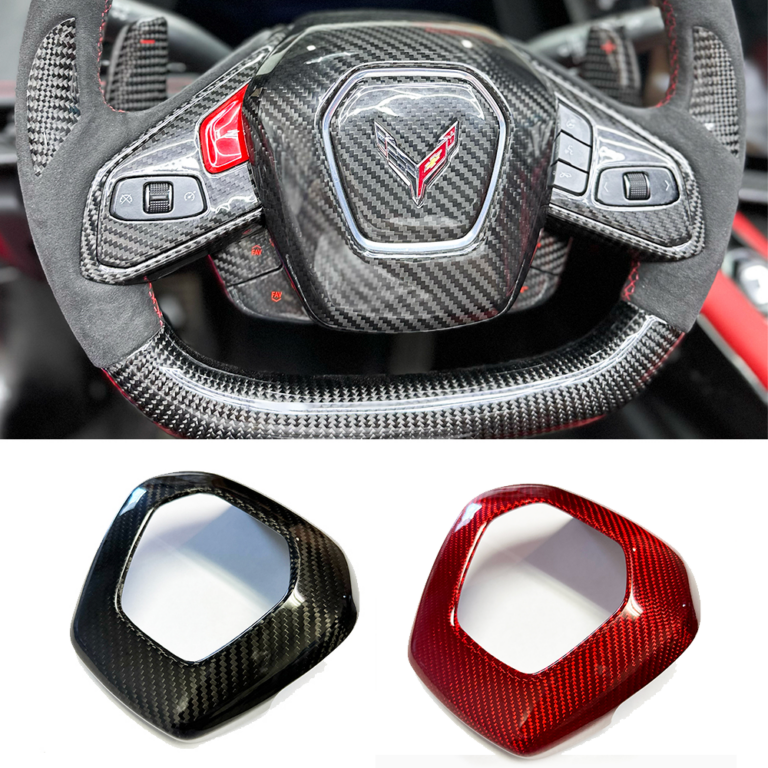 C8 Corvette Carbon Fiber Center Steering Wheel Full Cover | Black / Red / Forged