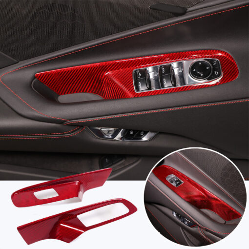 C8 Corvette Carbon Fiber Window Switch Panel Covers (Coupe/Convertible) | Black / Red / Blue Carbon
