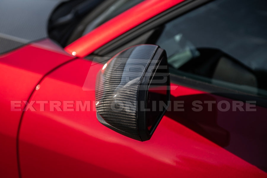 Enhance the exterior aesthetics of your 2015-2023 Ford Mustang with these premium Carbon Fiber Mirror Cap Covers. Designed for a sleek, high-performance look, these covers provide an instant visual upgrade while maintaining the Mustang’s aggressive styling. Crafted from high-quality carbon fiber, these mirror caps offer both lightweight durability and a perfect fit for a factory-like appearance.
