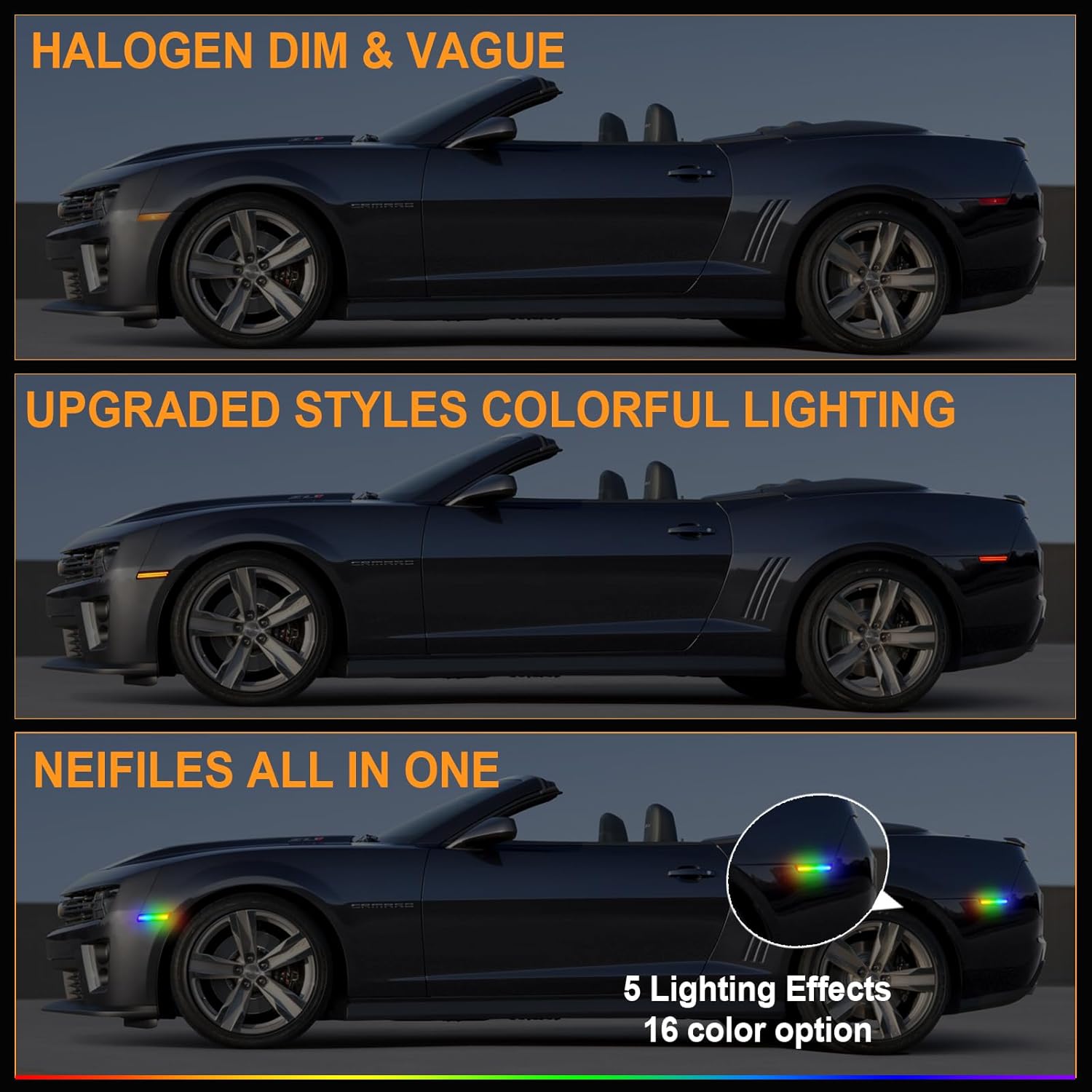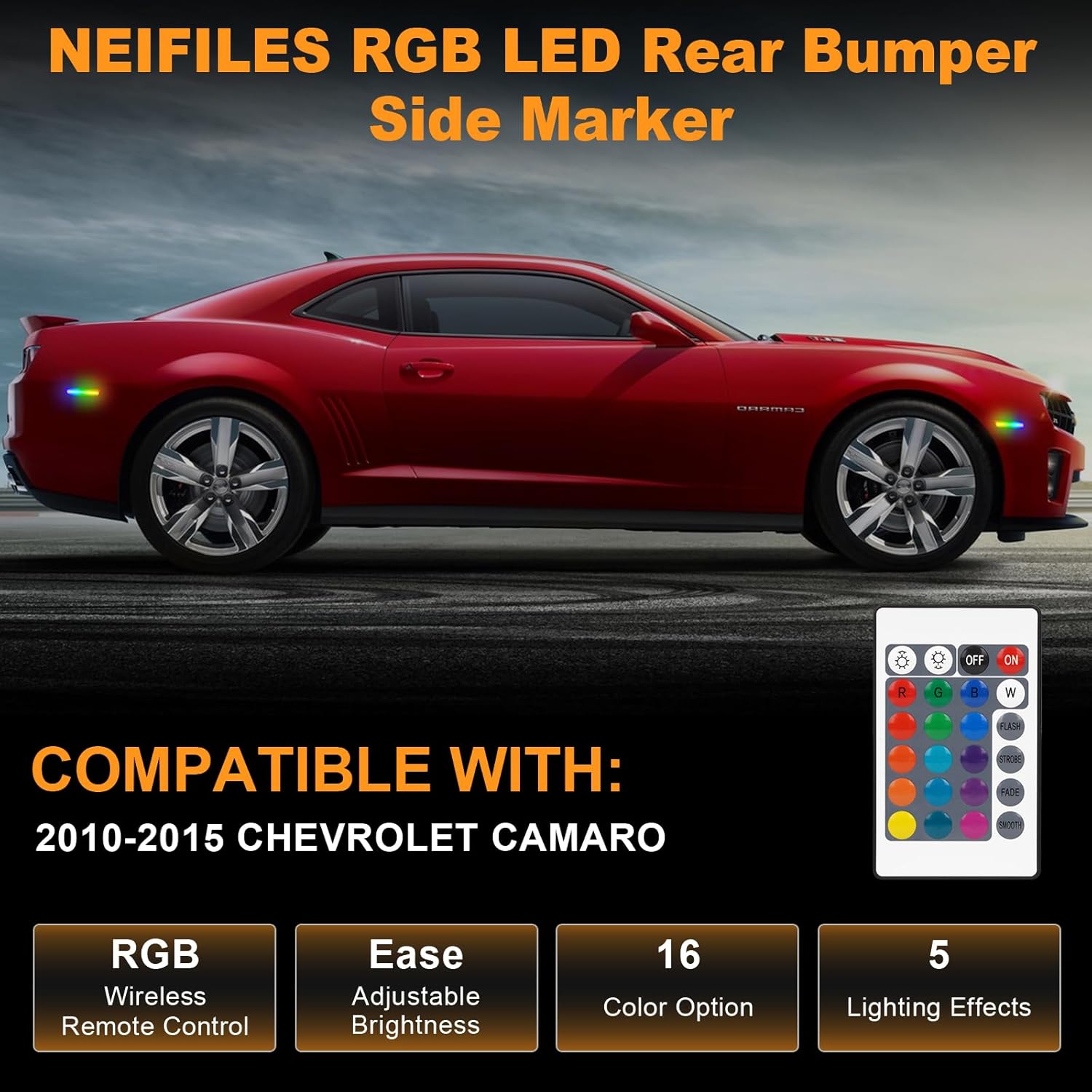 Upgrade your Camaro’s exterior lighting with a sleek, aggressive look and full-color customization. These smoked RGB LED side markers are designed specifically for 2010–2015 Camaro models, delivering a modern, high-end appearance while dramatically improving visibility and style.