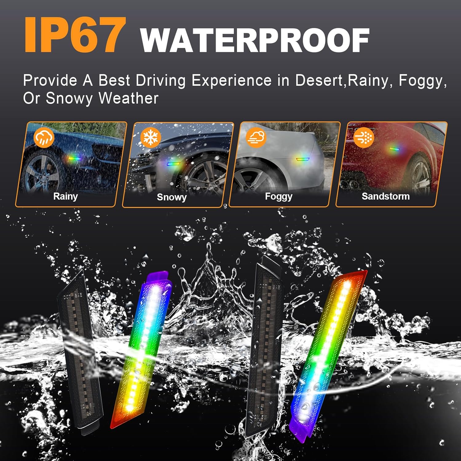 Brighter and more efficient than factory side markers, improving both aesthetics and visibility. - Durable & Weather Resistant