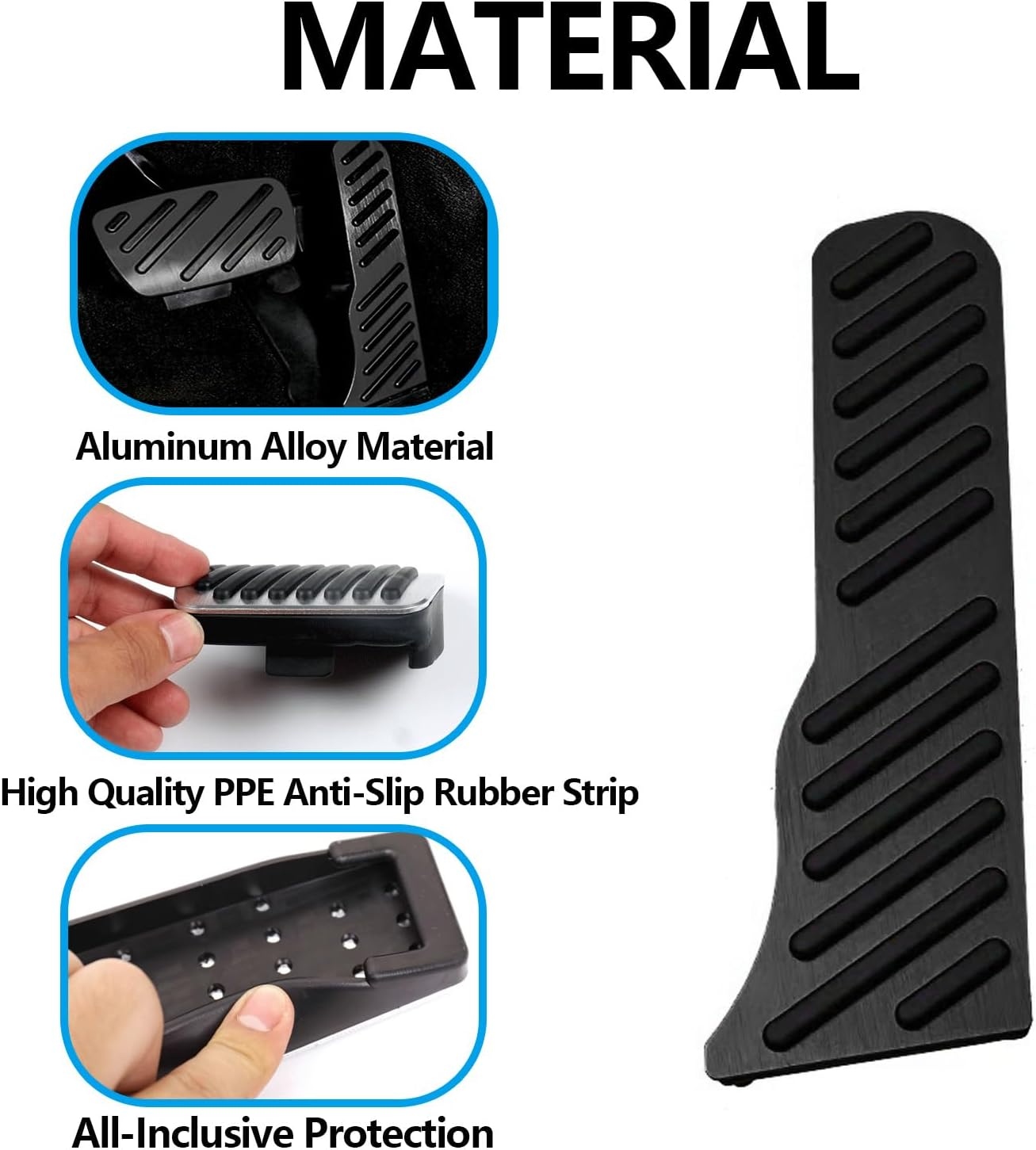 - Anti-Slip Rubber Inserts – Enhanced grip for better pedal control and safer driving.