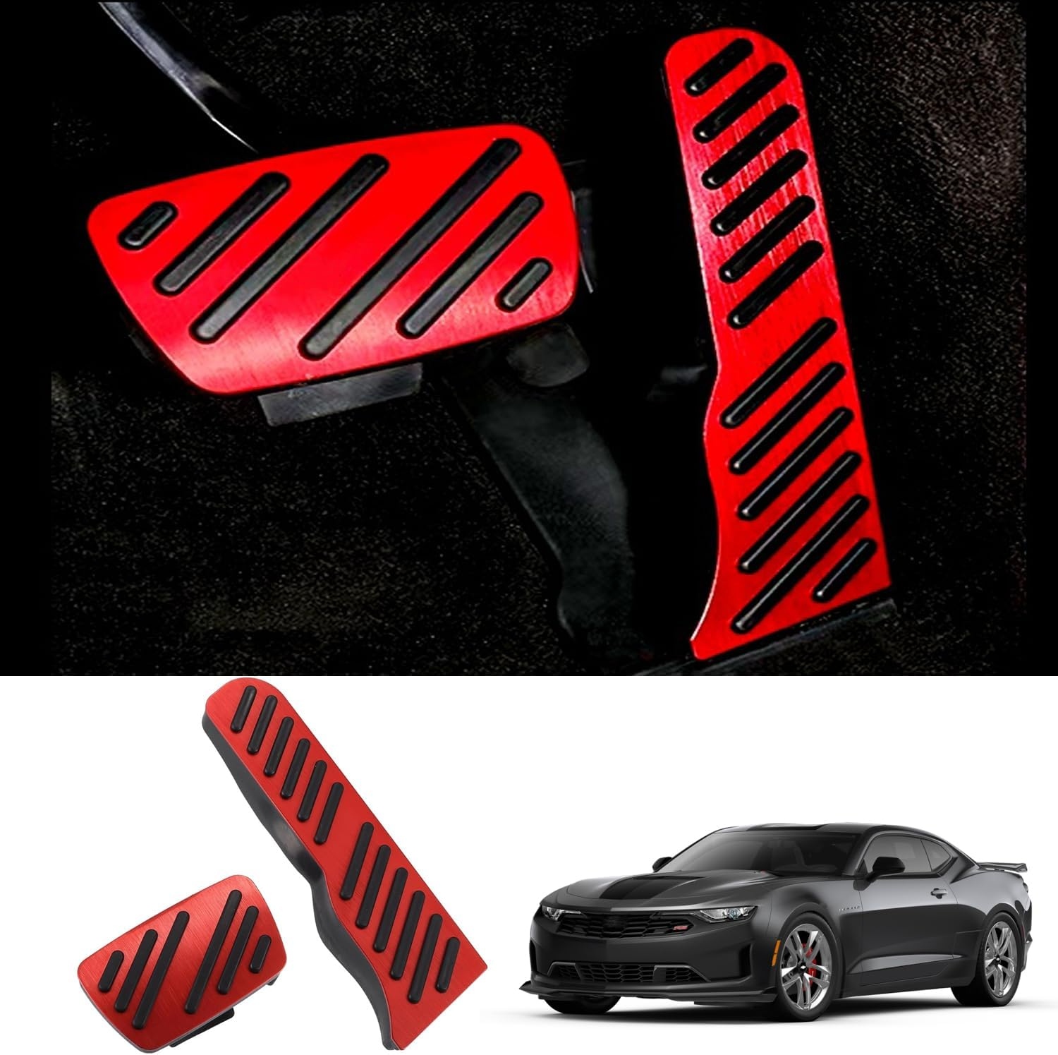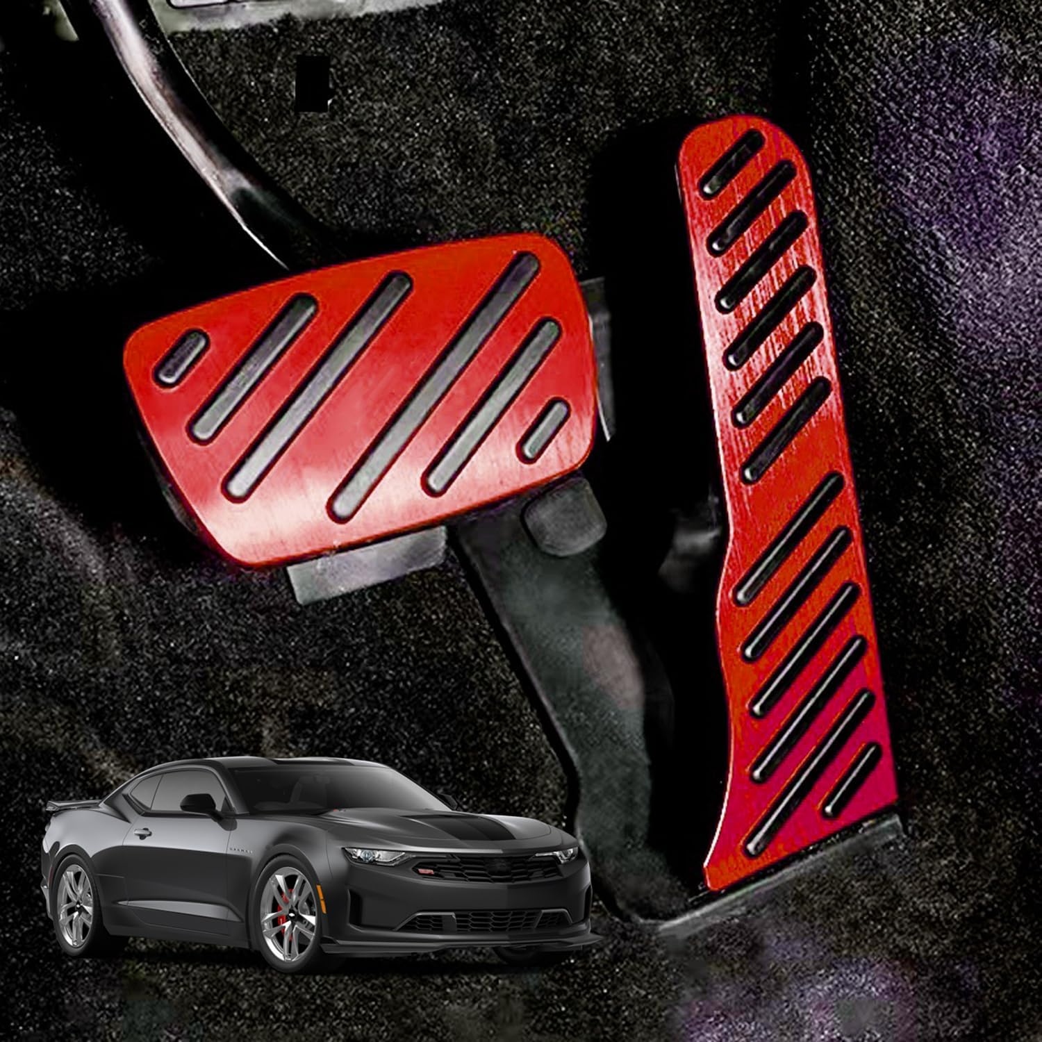 Upgrade the interior of your 2016 – 2024 Chevy Camaro with our Aluminum Gas and Brake Pedal Covers | Next-Gen Speed. These high-performance pedal covers provide a sleek, motorsport-inspired look while enhancing grip and durability. Constructed from high-quality aluminum with anti-slip rubber inserts, they ensure improved control, making every drive more responsive and engaging.