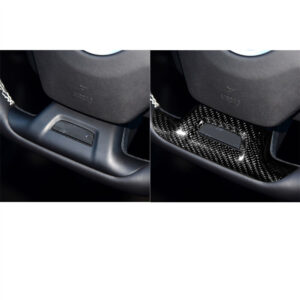 Both versions of the steering wheel panel cover are crafted from high-quality carbon fiber materials. Carbon fiber is known for its lightweight and durable properties, making it a preferred choice for automotive enthusiasts. The carbon fiber finish adds a touch of sportiness and elegance to your Camaro’s interior.