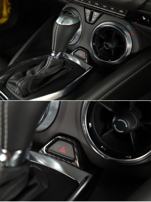 • The carbon fiber texture brings a sporty and high-end feel to the emergency button area, enhancing the overall aesthetics of your Camaro’s cabin.
