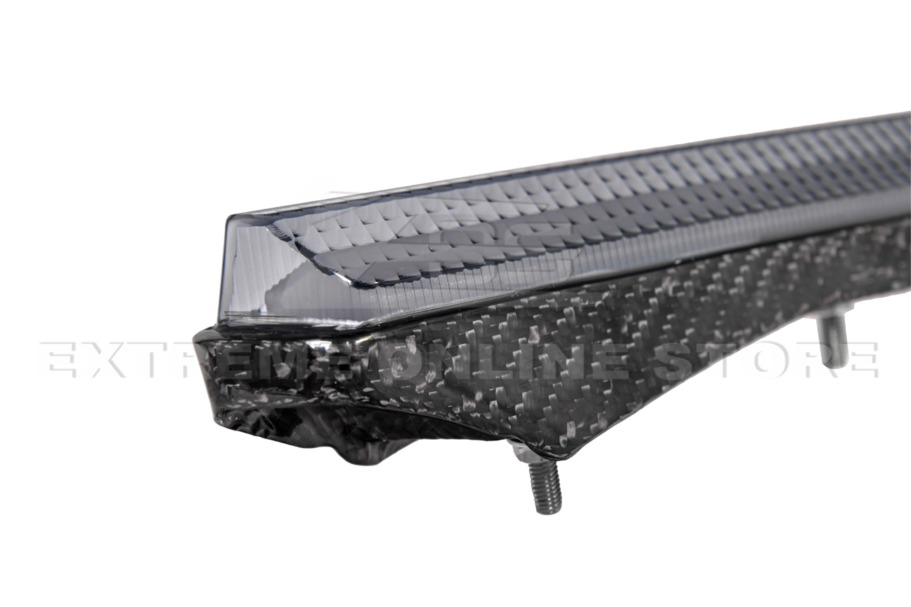 Crafted from lightweight, high-strength real carbon fiber, these bezel inserts feature integrated white LED DRLs that add both an exotic look and enhanced daytime visibility. The sleek, sculpted design follows the lines of the factory front bumper for a precise, flush fit that looks factory — but sharper and more aggressive.