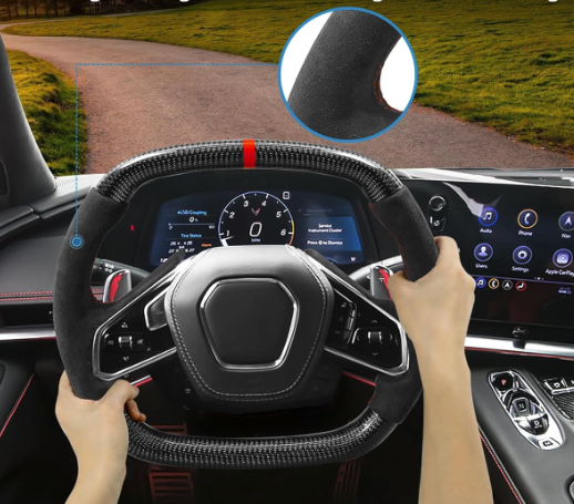 Custom Carbon Fiber Steering Wheel for any 2020+ Corvette.Real Carbon Fiber and Alcantara Suede Material that retains the heated option. Custom Wheel options available HERE