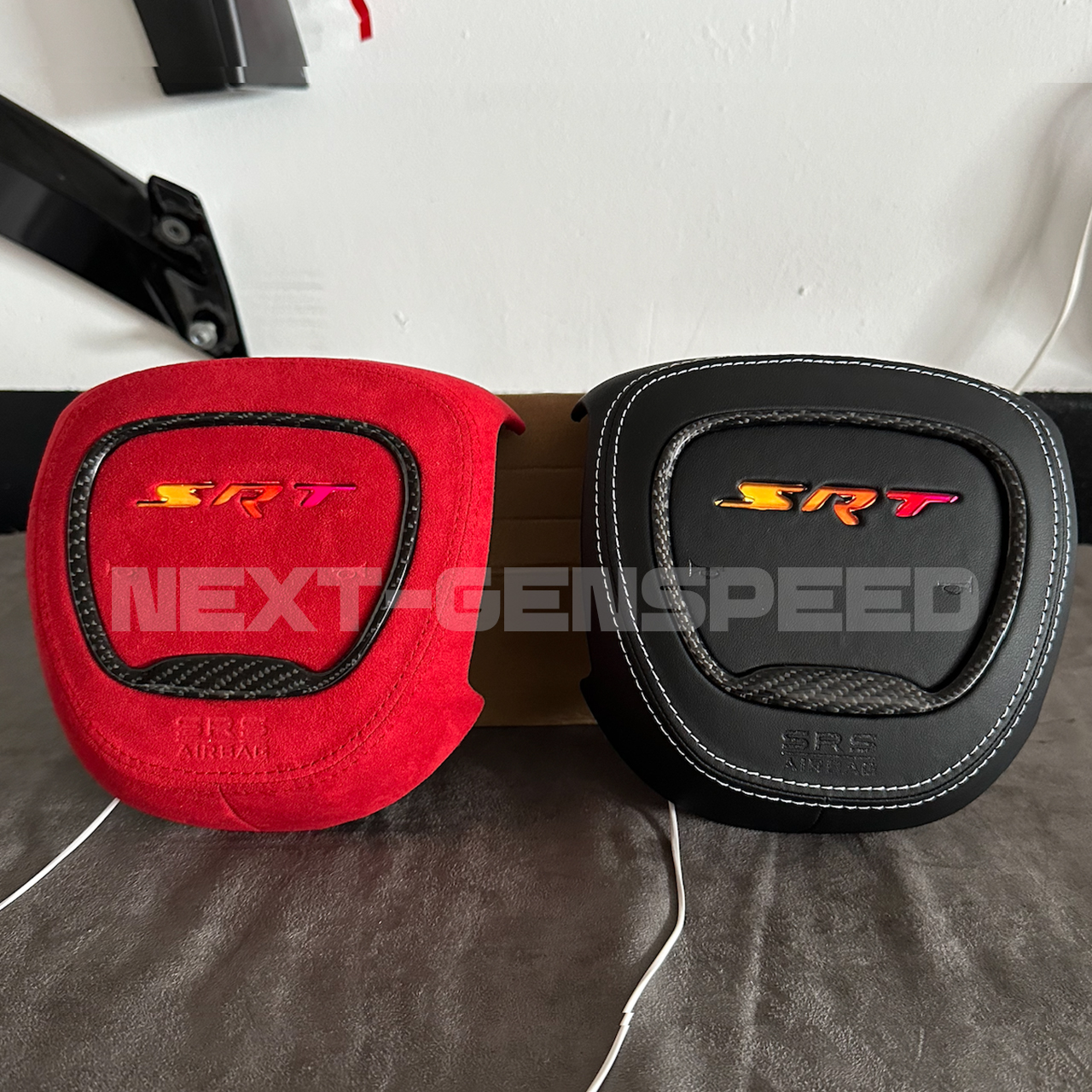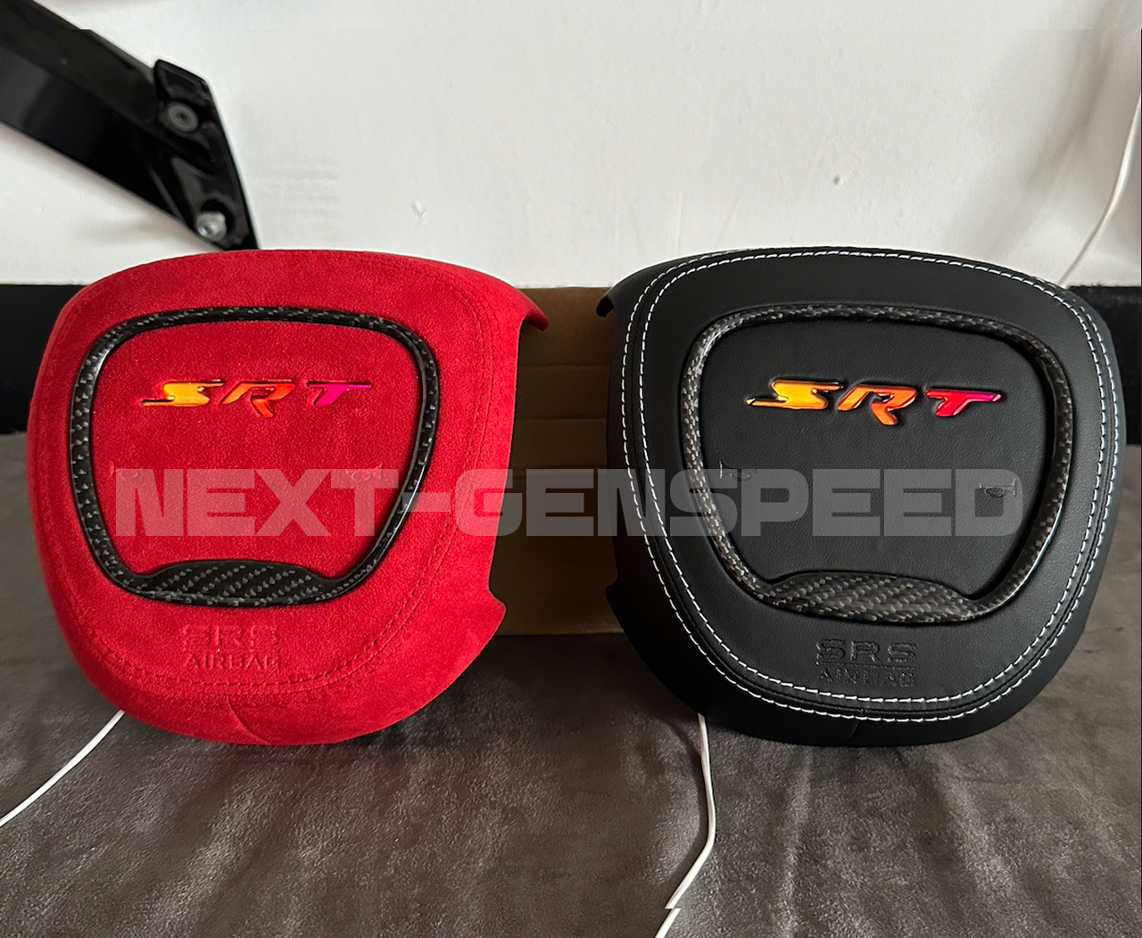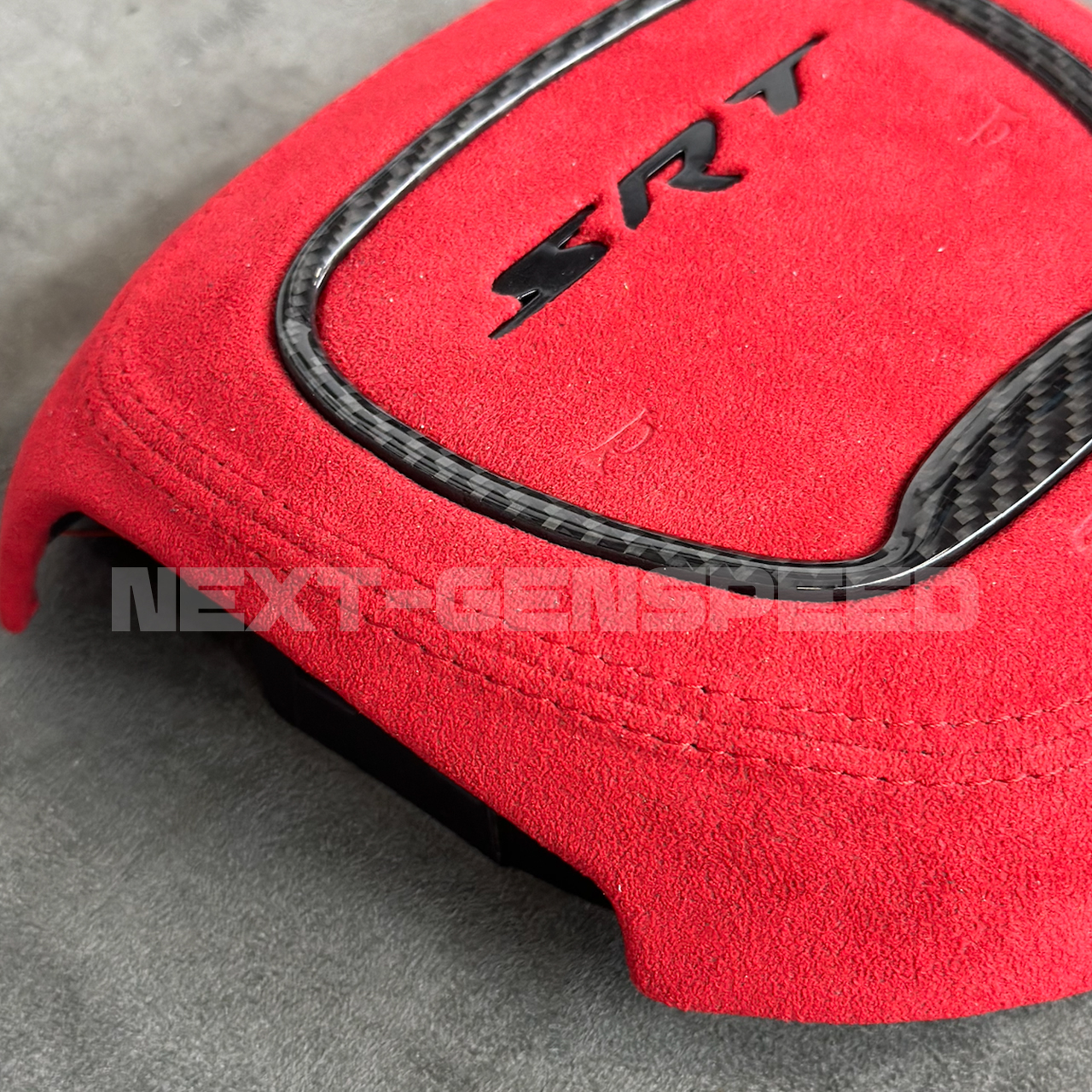 NEW Custom RGB LED Customized Steering Airbag Cover Replacement for any 2015+ Charger/Challenger/Durango SRT Center Airbag Cover Kit. Made to order with Real Carbon Fiber and Alcantara/Leather Material. Your choice of colors on the Stitching. Made to order – Current build time is about 3-4 weeks