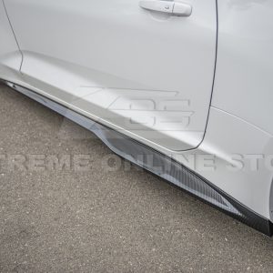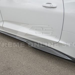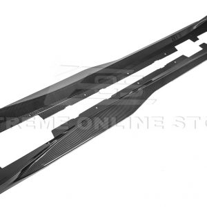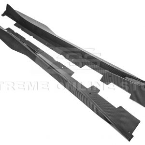Made with hydro-dipped carbon fiber, these side skirts offer a high-gloss, textured finish that is both durable and lightweight. The carbon fiber material adds a premium look while helping reduce weight, making it a great addition for those seeking both performance and style. Not only do these side skirts enhance your vehicle’s overall aesthetics, but they also help improve airflow along the sides of the car, reducing drag and enhancing stability at high speeds.