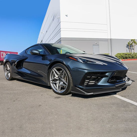 Crafted for precision fitment, the splitter lip is made from durable, lightweight materials to ensure long-lasting performance without adding unnecessary weight. The 5-piece design allows for a detailed, custom look that perfectly complements the sleek lines of the C8 Corvette.