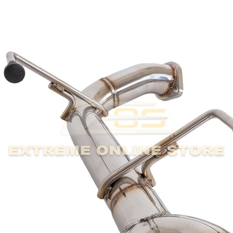 Crafted from high-quality stainless steel, this axle-back exhaust is engineered for maximum exhaust flow, resulting in better engine performance, improved horsepower, and increased torque. Whether you’re on the street or at the track, this exhaust system offers a louder, more aggressive sound that improves your driving experience. It’s designed for easy installation, with a bolt-on setup that requires no welding or major modifications.