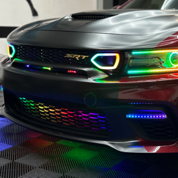 This Dodge Charger Snorkel Grill Lighting Kit is the setup you need to transform the front end of your 2019+ Charger Grill. Our Brand New Snorkels allow you to keep that OEM clean diffused look while getting millions of color options and hundreds of chasing patterns!