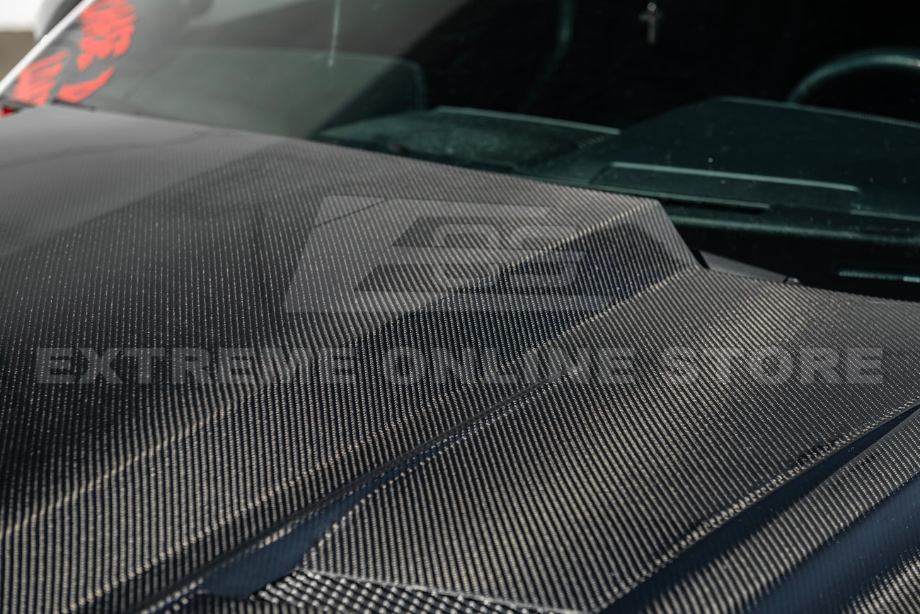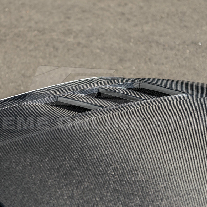 Transform the aggressive presence of your S550 Mustang with this Terminator Style Front Vented Bumper Hood, designed specifically for 2018–2023 Mustang GT, EcoBoost, and Shelby-style builds. Inspired by the iconic Terminator-era Cobra, this hood features deep sculpted lines, large heat-extracting vents, and a bold front extension that seamlessly integrates with the factory bumper.