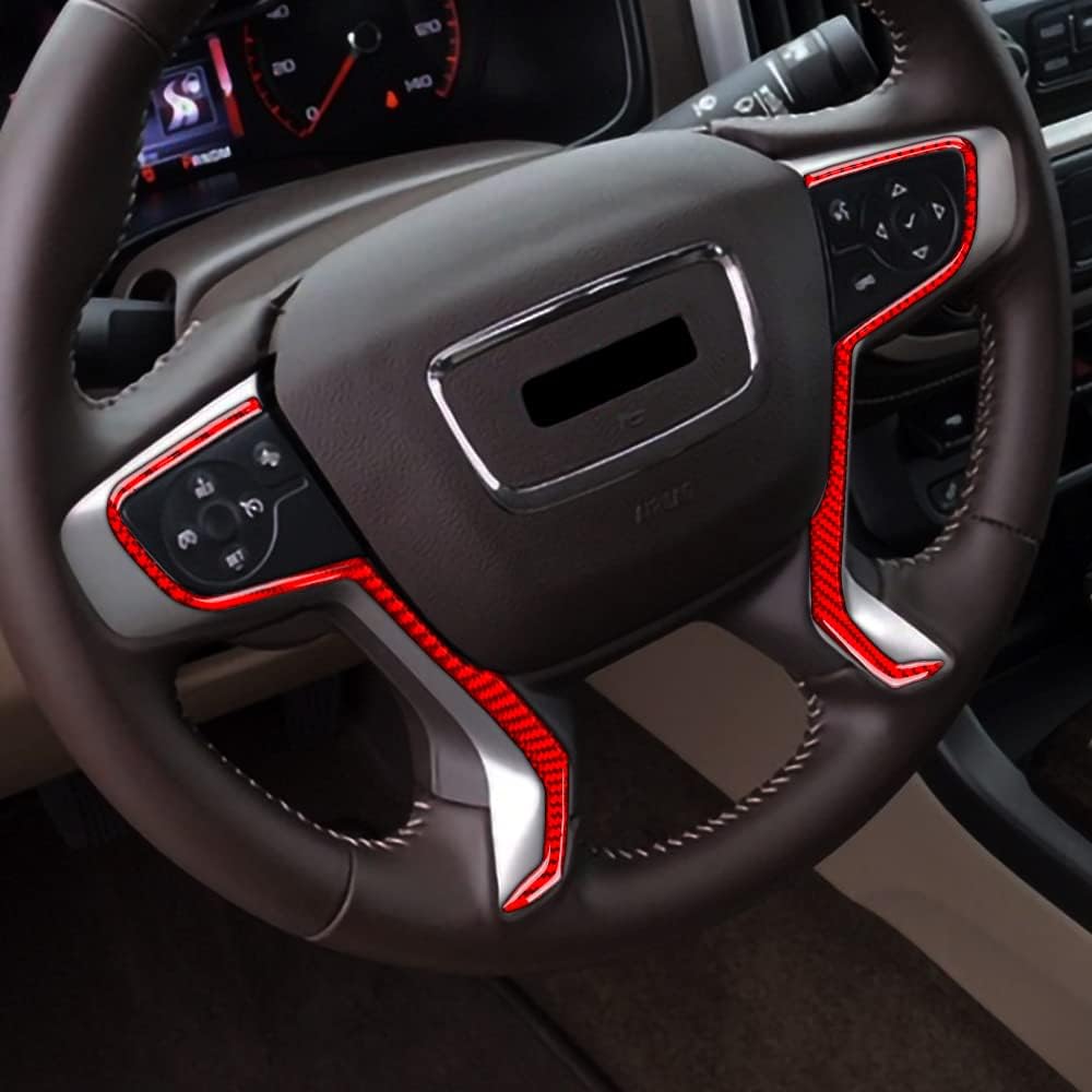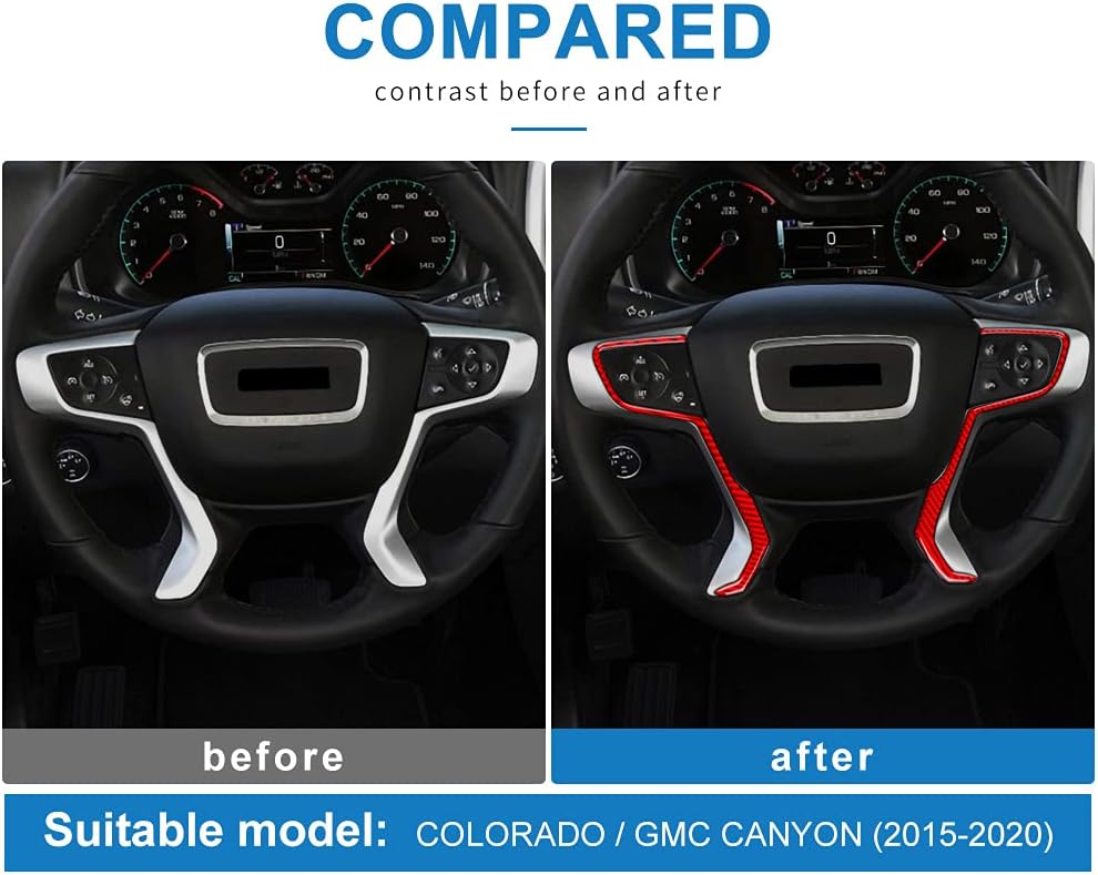 Enhanced Interior Aesthetics: With its sleek and modern design, the carbon fiber steering wheel trim kit elevates the overall appearance of your Canyon’s interior, giving it a more upscale and sophisticated look and feel.