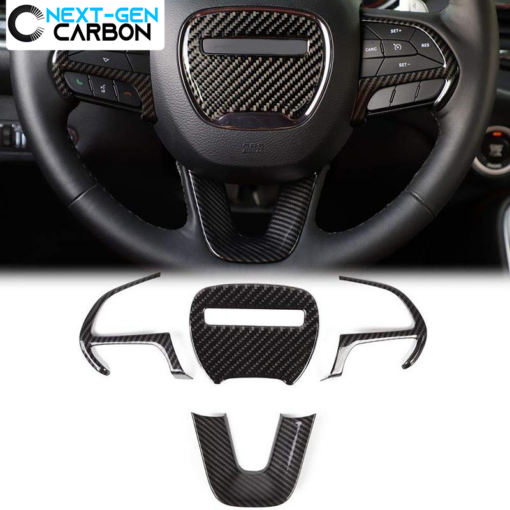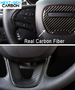 This is a Carbon Fiber or Colored Steering Trim kit for your 2015-2020 Dodge Challenger and Dodge Charger. Easily installed as an cover, with pre-cut and installed adhesive on the back to make your interior different from the rest. THIS IS NOT A VINYL STICKER. Center Steering Cover available separately HERE