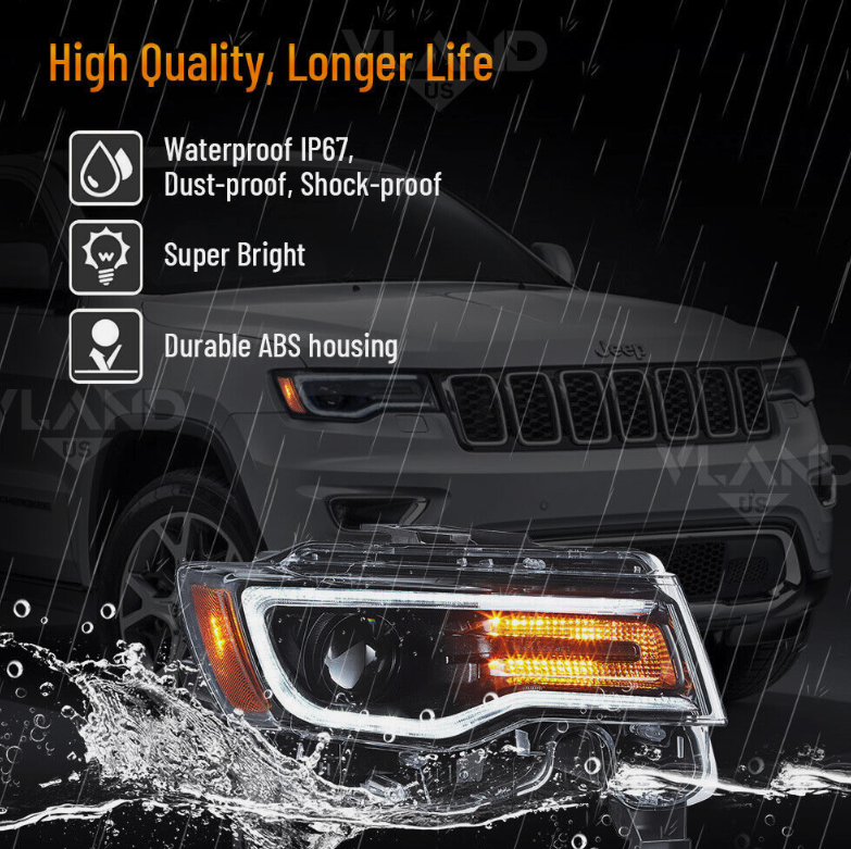 Upgrade your Jeep Grand Cherokee with our premium LED Projector Headlights, designed to deliver a bold, modern look while drastically improving nighttime visibility. Crafted for model years 2014–2022, these headlights offer plug-and-play installation and a perfect fit — giving your SUV a sleek and aggressive front-end transformation.