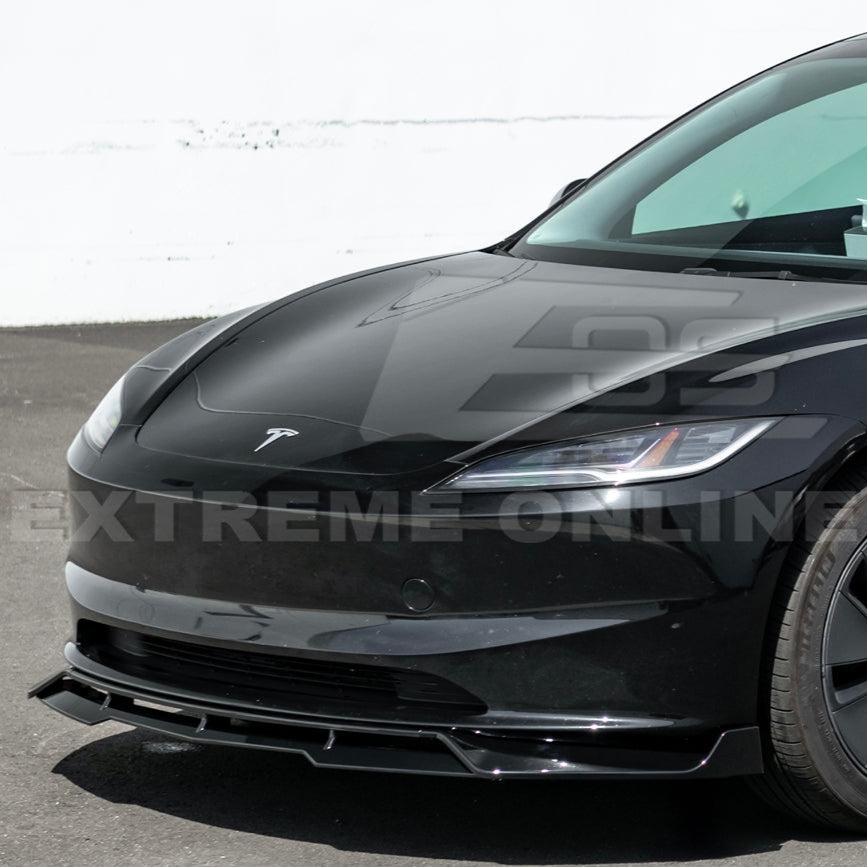 Upgrade your 2024+ Tesla Model 3 Highland with our precision-engineered Gloss Black Front Splitter, part of the premium Performance Body Kit line. Designed exclusively for the refreshed Highland model, this splitter delivers a bold, motorsport-inspired aesthetic that turns heads while optimizing functionality.