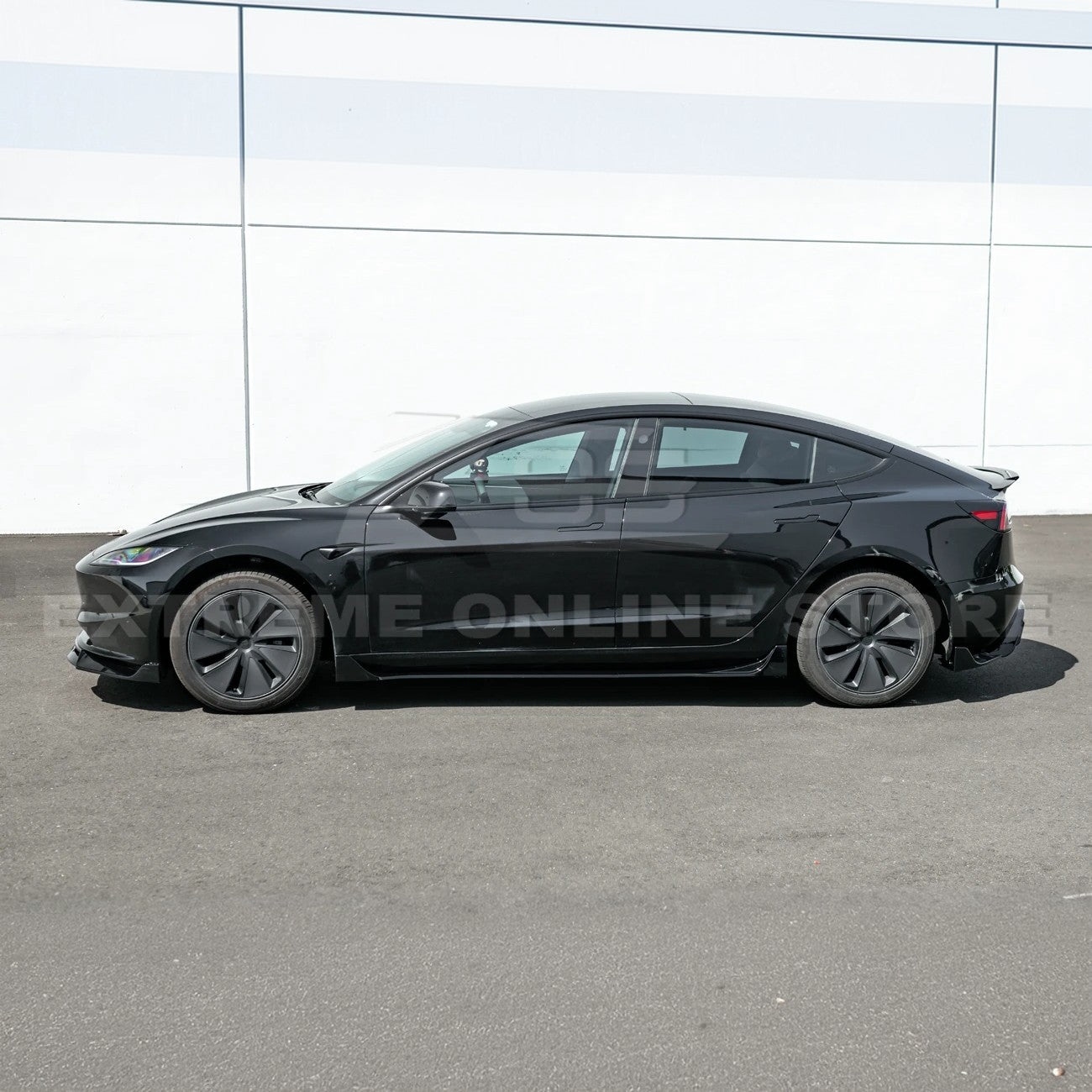 Fits all 2024+ Tesla Model 3 Highland models. Includes EOS Performance Track Style body kit in glossy black finish. Made from durable ABS plastic. Enhances aerodynamics and adds aggressive styling.